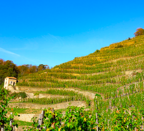 Fondé en 1940 par Francis Vernay, puis élevé au rang de référence mondiale grâce à Georges Vernay, le « pape du Viognier », ce domaine a joué un rôle historique dans la renaissance du Condrieu. Niché sur les terrasses granitiques de l’emblématique Coteau de Vernon, le domaine s’étend sur environ 2,5 ha de vieilles vignes (50 à 80 ans) travaillées manuellement. Certifié bio, il mise sur des vinifications traditionnelles (pressurage direct, élevage 12–18 mois en barriques sur lies fines) pour exprimer toute la noblesse du Viognier issu de terroirs escarpés.