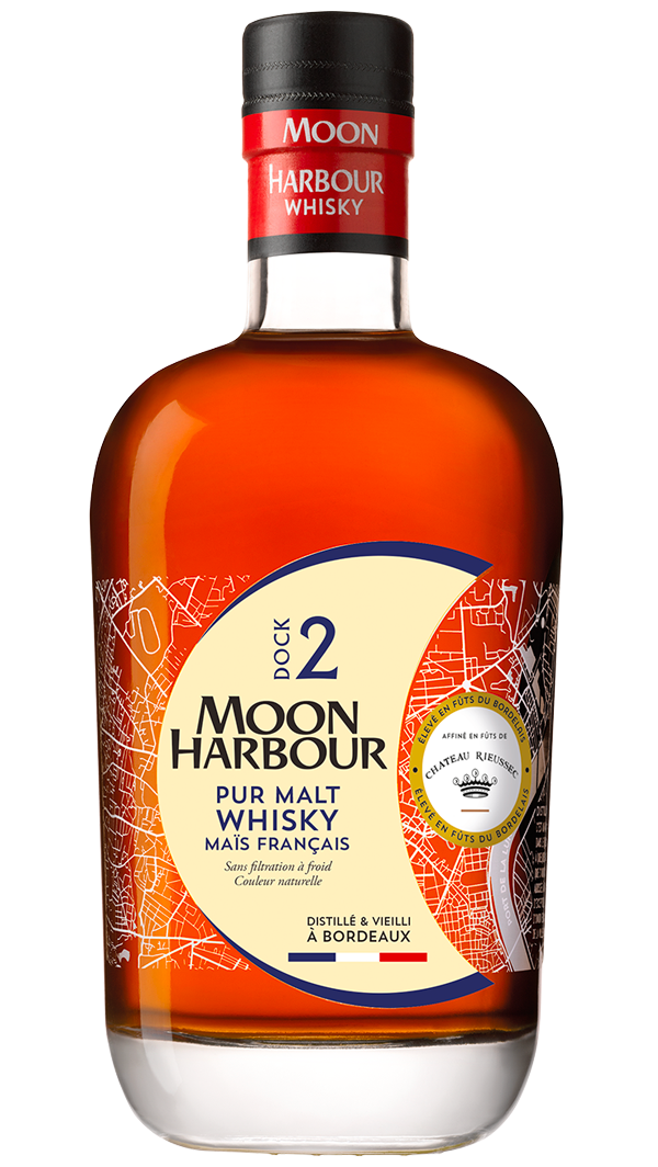 Ce nom, Moon Harbour, elle le doit au fameux croissant de lune que dessine la Garonne à l’entrée de la ville, si emblématique de celle-ci qu’il figure sur ses armoiries ! Belle façon de rappeler que jadis, sur les pavés du bien nommé Port de la Lune, les fûts à quai tamponnés « Bordeaux » attendaient d’être embarqués de nuit sur les navires en partance…Il n’en fallait donc pas moins pour qu’en 2014 soit créées la distillerie au sein même d’un blockhaus datant de la Seconde Guerre Mondiale. Un beau projet de réhabilitation au sein du quartier du Bassin à Flot, port de plaisance Bordelais qui voit son environnement se transformer.